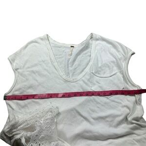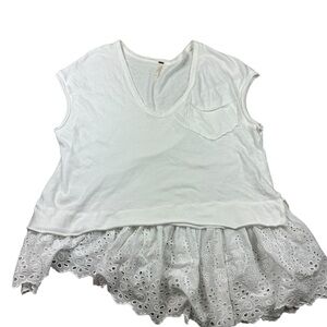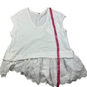 Just as effortless as it is essential, this timeless two-for-one tee is featured in a drapey, relaxed fit with staple scoop neck tee and defined lace trim piecing at bottom for added dimension. Relaxed, drapey fit. Scoop neckline, front patch pocket, dolman sleeves, asymmetric bottom hem. No holes, stains, or piling.