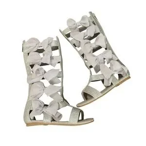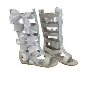 Joyfolie Girls Alexa Silver Glitter Gladiator Sandals with Bows | Size 10