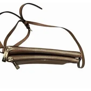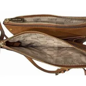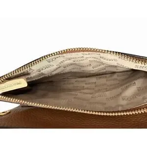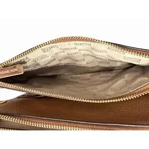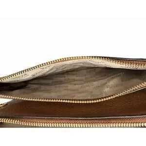 Michael Kors Fulton Double Zip Crossbody Pebble Leather Brown W/ Gold Hardware