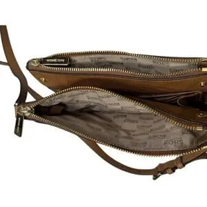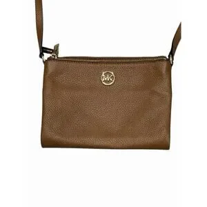 Michael Kors Fulton double zip crossbody bag. Pebbled brown leather with gold hardware. The inside and outside of the bag is in great, clean condition l. Adjustable strap. Bag height is 6.5” / width 9” Smoke free home