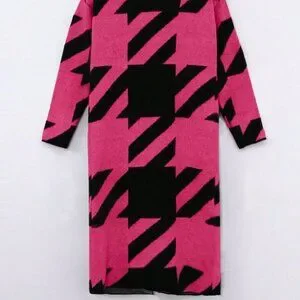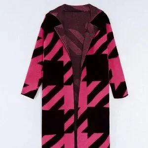 Hot Pink Casual Women's Colorblock Long Sleeve Knitted Cardigan