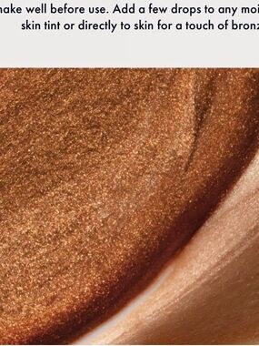 Liquid bronzer in a rich deep tan shade. Sheer, buildable warmth for a sun-kissed finish. Easy to blend into skin or mixed with moisturizer. Leaves a natural, luminous glow.