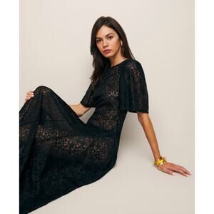 REFORMATION Waller Lace Black Knit Maxi Dress Size Small NWT