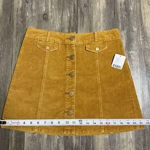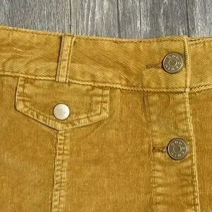 Features a soft corduroy fabric with a flattering high-rise fit and full button-front closure. The warm golden tone makes this perfect for fall outfits, festival looks, or everyday casual wear.