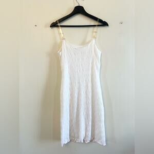 Vintage Y2K white dress 3D appliqué rose lettuce hem 2000s 90s bridal summer S