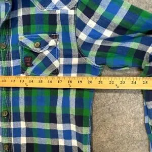 Supreme Flannel Button Shirt Mens Medium Green Blue Plaid Casual Cotton
