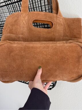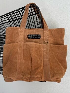 Designed to be your daily bag to take you from the workday to the weekend, this totally timeless tote is featured in a staple square silhouette and stunning suede fabrication with defined pocket detailing and double top handles for added functionality.