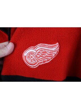 Vintage 90s Mens Large Detroit Red Wings Hockey 1/4 1/2 Zip Fleece Sweater Red