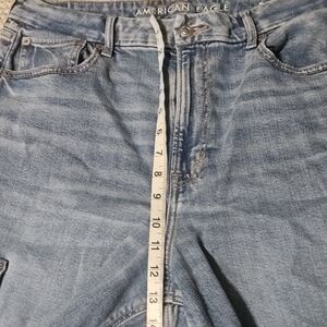 American Eagle Curvy Super High Rise Baggy Wide Leg Women's Blue Cargo Jeans 14