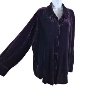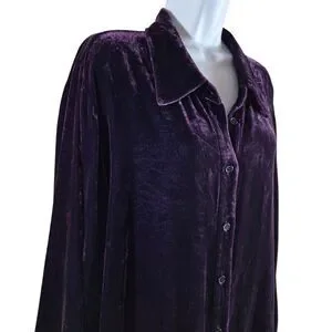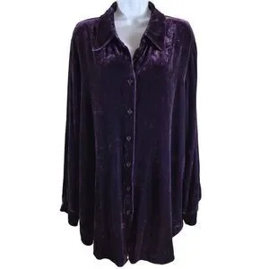 Soft Surroundings Purple Velour Button Up Shirt 2XL Relaxed Fit Minimalist Goth