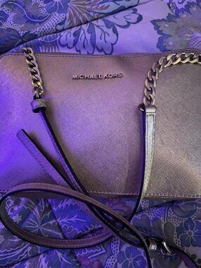 This Michael Kors Gold Jet Set Crossbody Handbag 9 1/2 x 6 1/2 x 2 is in good condition.
