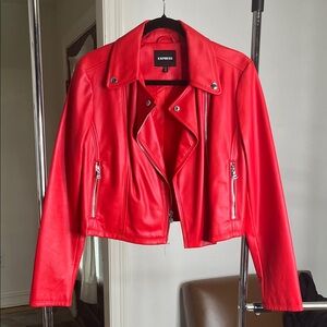 Express Red Faux Leather Moto Jacket