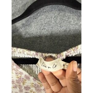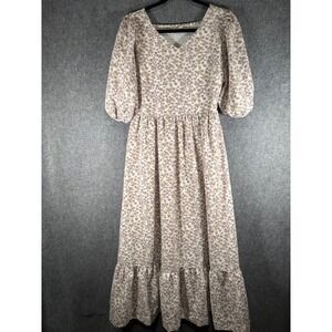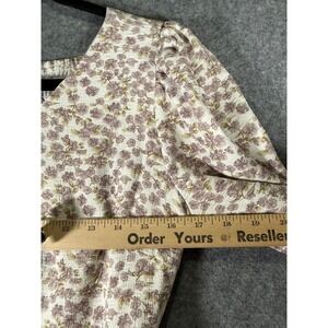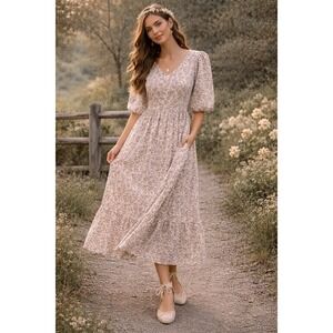 Leia & Co M Purple Floral V-Neck Puff Sleeve Midi Dress Pockets Smocked Back