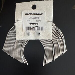 Bold silver fringe earrings by Free People. Textured crescent top with cascading chain tassels. Lightweight movement and eye-catching shine. Perfect for dressing up any outfit.