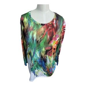 Erin London Multicolor Abstract Tropical Floral Print Long Sleeve Top Size M