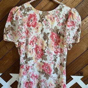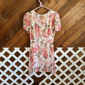 Such a gorgeous little frock for the spring. In very good used condition with minimal signs of wear. Please see all photos and note that there are a couple of pulled threads here and there. The back zipper is somewhat ‘groovy’ and wavy, but not very noticeable when being worn in my opinion