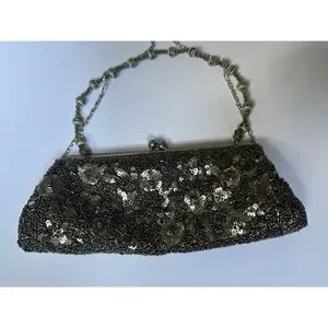 Vintage Silver Beaded and Sequin Clutch