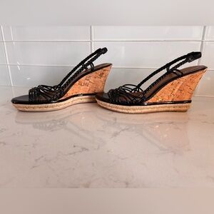Experience the perfect blend of style and comfort with Cole Haan's black slingback sandals. Featuring a chic peep-toe design and a woven pattern, these sandals are ideal for casual summer outings. The warm tan footbed adds a touch of elegance to the overall look. Very comfortable. Worn once for a few hours.