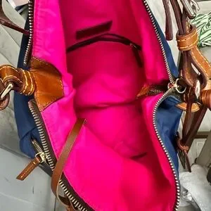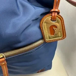 Dooney & Bourke Navy Nylon Shoulder Bag with Brown Leather Trim