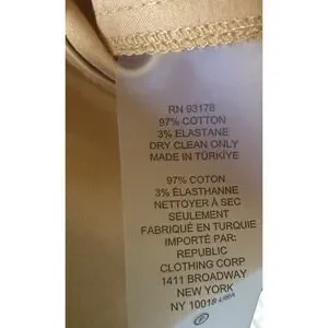 Upgrade your wardrobe with this elegant Elie Tahari Blue Label tunic blouse in a beautiful golden mustard hue. Crafted in 97% cotton and 3% elastane, this blouse offers both structure and comfort with a touch of stretch. Designed with a collared neckline, V-placket with stitched detailing, and 3/4 cuffed sleeves, it's a versatile piece perfect for work, business casual, or a chic everyday look.