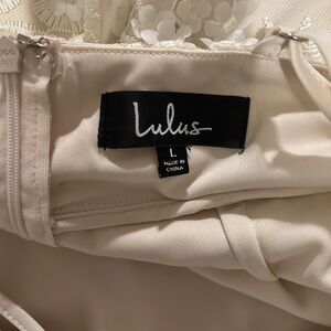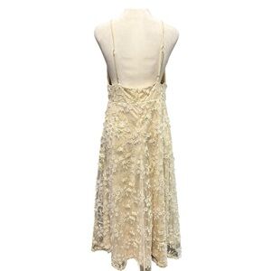LULUS Flourishing Kiss Cream Floral Embroidered Floral Lace Midi Dress EC Sz L