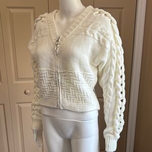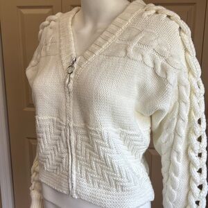 Cable knit sleeves with open cable knit across the shoulders and down the arms