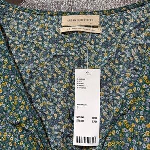 Urban Outfitters green floral smocked blouse