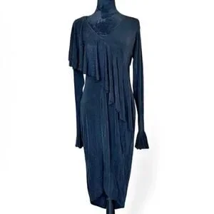 Black Draped Cutout Midi Dress – Minimalist Asymmetrical L
