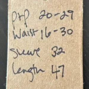 measurements flat: pit to pit 20–29” with stretch, waist 16–30” with stretch, sleeve 32”, length 47”. fits like a L-XL depending on desired fit. size estimates are approximate, refer to measurements