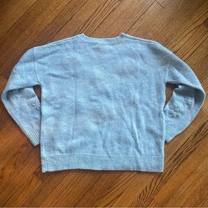 Lilly Pulitzer Elizabelle Sweater in Heathered Bonaire Blue featuring long sleeves, a round neck, and 3D floral embroidery