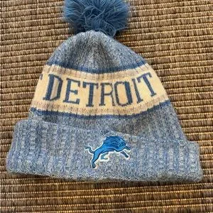 Cozy knit beanie by New Era. Features Detroit lettering. Blue pom-pom accent. Ideal for chilly days.