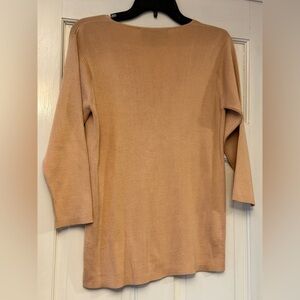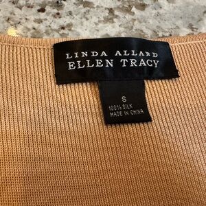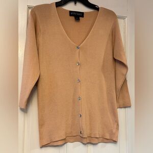 Elegant V-neck cardigan by Ellen Tracy. Features a button-up front. Warm tan color. Perfect for layering. NWOT