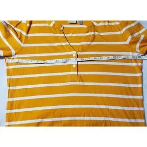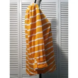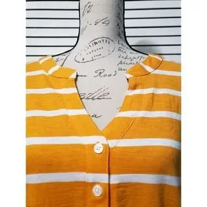 Caribbean Joe Roll Tab Popover Shirt Women's Size Large Orange White Striped V-Neck Long Sleeve Top.