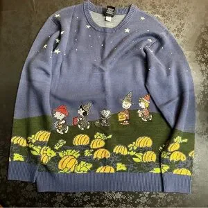 Hot Topic Peanuts Halloween / The Great Pumpkin pullover sweater. Embroidered characters.