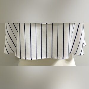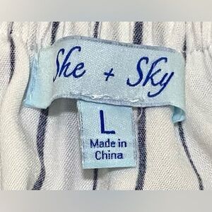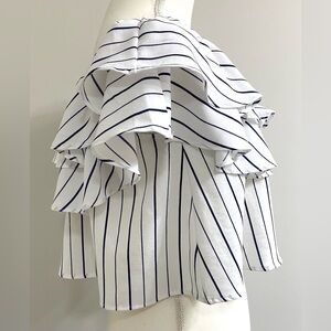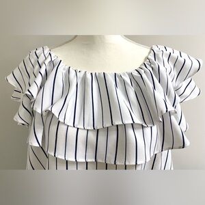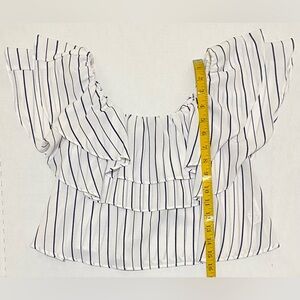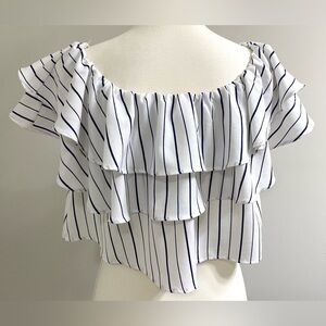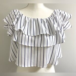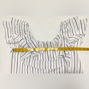 She + Sky Womens L White Blue Stripe Ruffle Flowy Crop Top Boho Y2K Maximalist