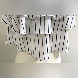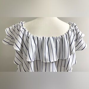 -She + Sky Boho Y2K Preppy Maximalist White Navy Blue Stripe Ruffle Flowy Crop Top