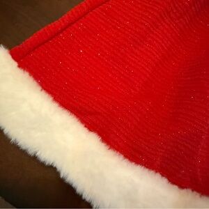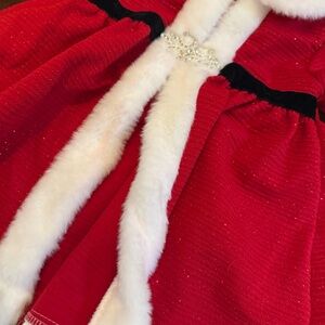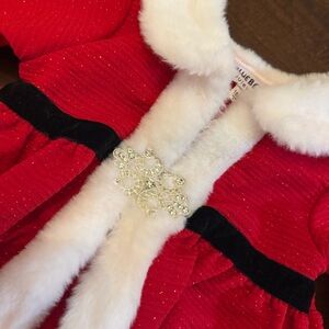 Blueberi Boulevard Toddler Girl Christmas Holiday Dress Jacket - new without tags - stunning bright red stripe texture with shiny glitter and white fur along the edges. Very Santa - big listed blingy sparkly clasp on the front. Beautiful for a Christmas parade, pageant, family photos or a party. 18 Months