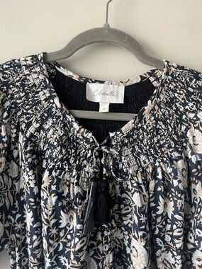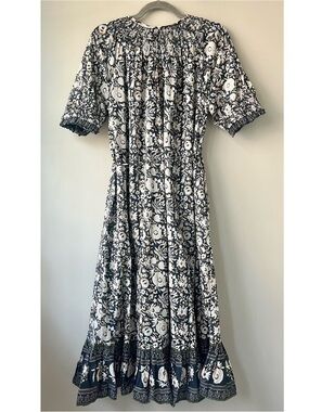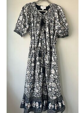Cleobella NWOT Navy and Tan Floral Smock Tassel Midi Dress Small