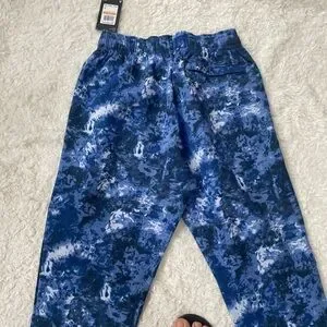 Comfortable joggers with a dynamic blue pattern. Ideal for active wear.