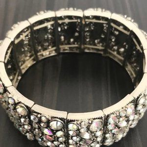 Silver-Tone & Rhinestone Stretch Panel Bracelet