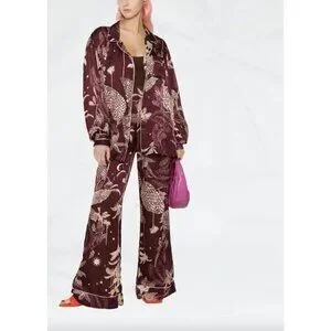 tags: designer, luxury, luxurious, high rise, high waist, wide leg, patterned, printed, floral, abstract, silky, satin, pajama pant, party, cocktail, night out