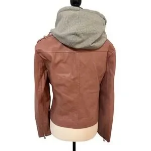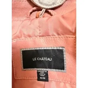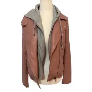 Vintage Le Chateau Medium Pink Faux Leather Moto Jacket w/ Grey Hoodie