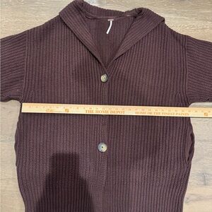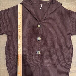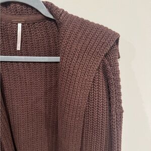Free people swim too deep cardigan sweater in chocolate brown. Good condition other than some snags, only worn twice. Size large, measurements in pics.
