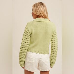 Green patchwork knit spring lace crochet eyelet boho cardigan ribbed sweater