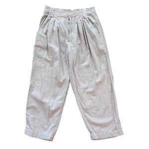 Free People Pleated Tapered Cotton Pants Beige High Rise OB1626316 Size 6