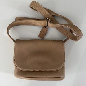 Coach Mini Crossbody Bag Tan Pebbled Leather Small Flap Purse Like New
