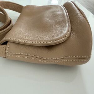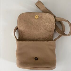 Classic and timeless Coach mini crossbody bag in a versatile tan/nude shade. Made from soft pebbled leather with a structured flap design and magnetic snap closure. Perfect everyday neutral that pairs with everything.