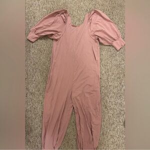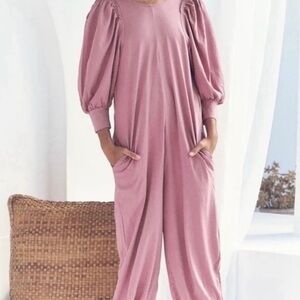 Relaxed-fit jumpsuit with puff sleeves and a soft, drapey silhouette. Subtle side pockets and breathable fabric for everyday wear. NWT
