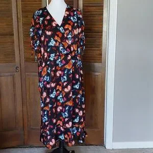 NWT Torrid Black Midi Brushed Charmeuse Butterfly Wrap Dress Sz 2X