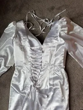 Wear Your Love Vintage Style White Satin Lattice Back Wedding Maxi Dress SIZE 14